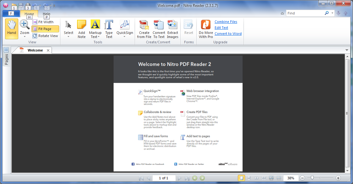 Według mnie bardzo dobry program, darmowy i łatwy w obsłudze. Na pierwszy rzut oka to zwykła przeglądarka plików PDF, lecz naprawdę zawiera szereg innych ciekawych możliwości. Z jego pomocą możemy dodawać komentarze do tekstu, zaznaczać i podkreślać fragmenty wiadomości, tworzyć podpisy i sygnatury, pobierać obrazki i teksty. Bez większych trudności zmienimy rodzaj, kolor i wielkość czcionki. Co najważniejsze program jest bezpłatny i łatwo dostępny w sieci. Jednym największym minusem jest brak polskiej wersji językowej. Według mnie Nitro PDF Reader to jeden z lepszych programów do edytowania plików PDF.