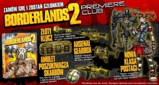 Gracze, którzy zamówią jedną z premierowych edycji Borderlands 2 uzyskają w dniu premiery dostęp do Premiere Club, dzięki czemu będą mogli pobrać Arsenał Gearbox, Złoty Klucz oraz Amulet Poszukiwacza Skarbów. Arsenał Gearbox to zestaw unikatowych broni, które ułatwią graczom przetrwanie pierwszych godzin na Pandorze. Złoty Klucz umożliwia zabranie rzadkiego przedmiotu ze skrzyni w tajemniczym Złotym Sanktuarium. Amulet Poszukiwacza Skarbów to przedmiot zwiększający prawdopodobieństwo znajdowania unikalnych przedmiotów podczas gry jednoosobowej i w trybie kooperacji. Dodatkowo, w ciągu 2-3 miesięcy od premiery gry, członkowie Premium Club otrzymają możliwość darmowego pobrania nowej, piątej klasy postaci – Mechromancera.