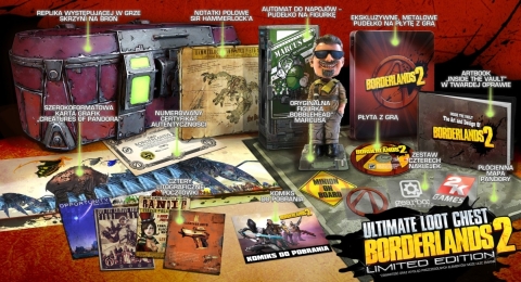 Limitowana edycja kolekcjonerska „Ultimate loot chest” to prawdziwa gratka dla najbardziej hardkorowych miłośników Borderlands. Ten robiący olbrzymie wrażenie pakiet zawiera: