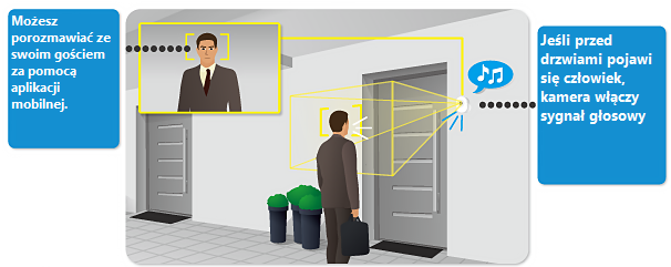 Gdy klient pojawi się przed drzwiami sklepu, SmartCube 300W automatycznie odtworzy nagrany dźwięk, a także poinformuje Cię o tym za pomocą aplikacji mobilnej. Dzięki dwukierunkowej komunikacji audio, możesz zareagować informując klienta o planowanej godzinie otwarcia sklepu – to działa tak, jak rozmowa przez telefon.