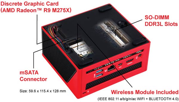 W niewielkich rozmiarów (59,6 x 128 x 115,4 mm) czarno – czerwonej obudowie zamknięty został 4-rdzeniowy, wydajny procesor AMD APU Richland APU A8-5557M oraz dyskretna karta graficzna Radeon™.