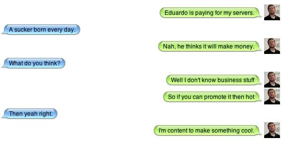 Giełdowy debiut Facebooka już za nami i niemal natychmiast po wystartowaniu na parkiet, w sieci zaczęły pojawiać się kolejne smaczki na temat serwisu oraz jego twórcy. Ekipie Business Insider udało się dotrzeć do zapisu rozmów prowadzonych przez Marka Zuckerberga na dosłownie kilka minut przed premierą witryny w 2004 roku.