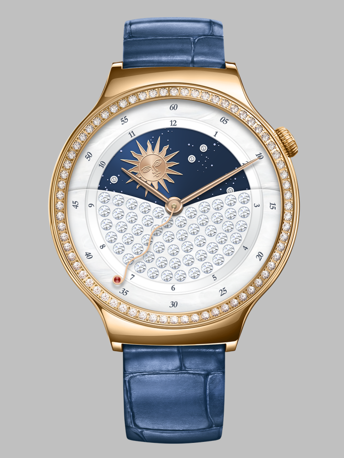 Huawei Jewel and Elegant jest dostępny w dwóch wariantach. Zegarek w wersji Jewel wysadzany jest 68 cyrkoniami Swarovskiego o średnicy 1,5 mm, rozmieszczonymi wokół koperty pokrytej różowym złotem, mierzącej 44 mm. Wyróżnia się wśród inteligentnych zegarków dostępnych na rynku olśniewającym zdobieniem. Subtelniejsza wersja Elegant charakteryzuje się radełkowaną tarczą w kolorze różowego złota.