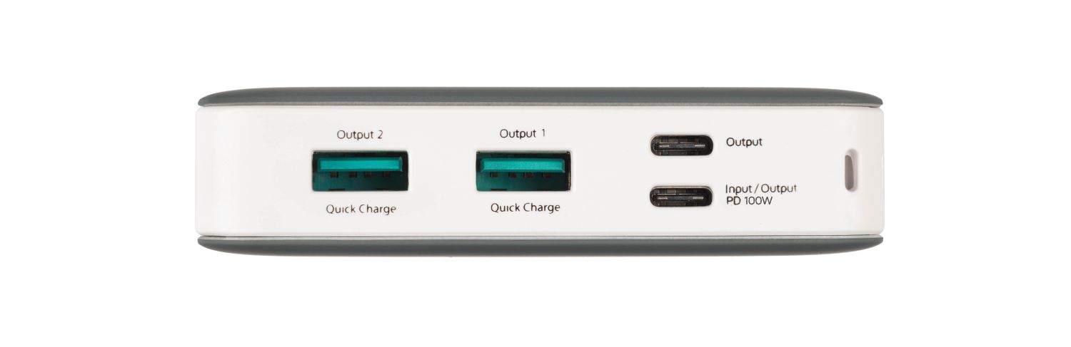 Powerbank Xtorm XB3 Titan ma w sumie 4 porty – dwa USB-A oraz dwa USB-C (jeden z nich może służyć zarówno do ładowania powerbanka z sieci, jak i innych urządzeń z powerbanka). Łącznie urządzenie może jednocześnie „podawać” prąd o mocy 130 W – do 4 różnych urządzeń, np. laptopa, smartfona, tabletu i czytniku e-książek. Jeśli jednak w danym momencie zależy nam na to, by szybko naładować tylko 1 urządzenie, to nowy powerbank jest w stanie podać prąd o mocy max. 100 W na jednym z portów USB-C (w przypadku drugiego USB-C maksymalna moc w takiej sytuacji – tzn. podczas ładowania jednego urządzenia – to 60 W).