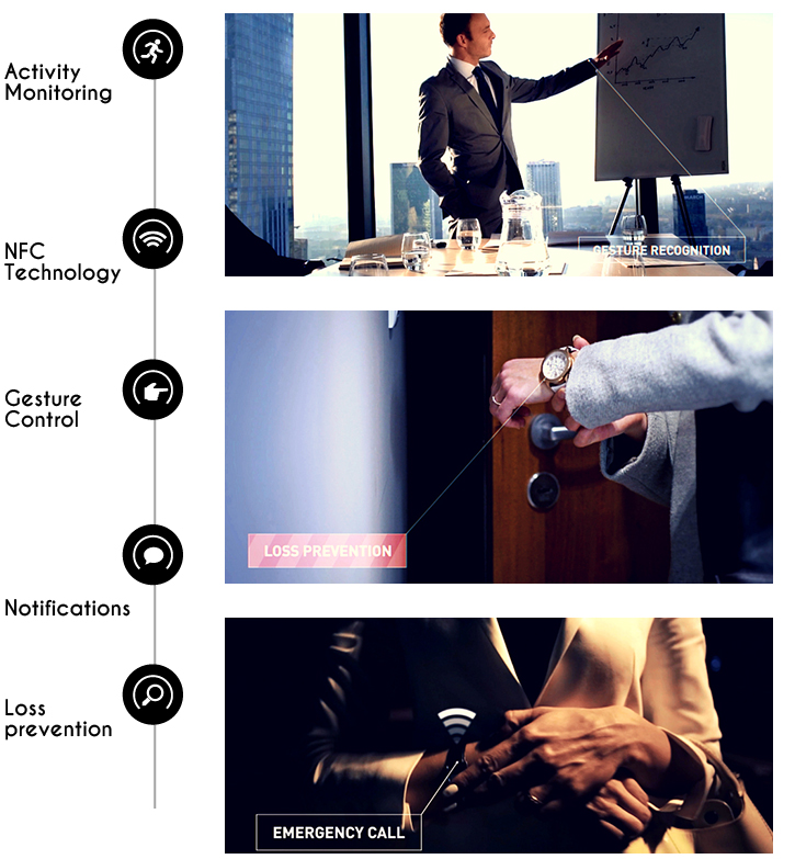 Obecnie zegarek jest symbolem pozycji społecznej, klasy użytkownika czy prestiżu. Dzięki Unique może się również stać ułatwieniem w codziennych rzeczach. Posiadając Unique nie musisz przejmować się sprawdzaniem co chwilę telefonu w oczekiwaniu na ważną wiadomość – sam segregujesz najistotniejsze dla Ciebie informacje i otrzymujesz dyskretne powiadomienia na pasek. Intuicyjny system oraz detekcja gestów pozwala między innymi odrzucić połączenie w sposób niewidoczny dla innych, bez ostentacyjnego spoglądania na telefon.
