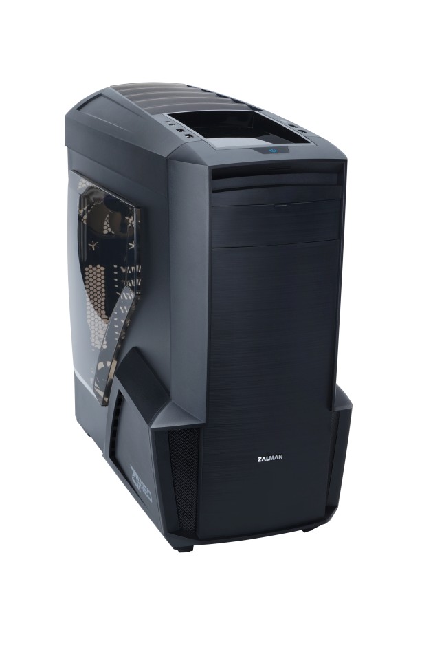 Z boku obudowy producent zainstalował akrylowe okno, dzięki któremu podejrzymy sprzęt w trakcie pracy – to kolejny ukłon w stronę użytkowników szczególnie zainteresowanych moddingiem i wyglądem wnętrza swego zestawu. Przedni panel pokryty jest w całości materiałem o fakturze szczotkowanego aluminium, a u jego szczytu zamontowano rozsuwaną klapkę skrywającą napęd optyczny w zatoce 5,25”.
