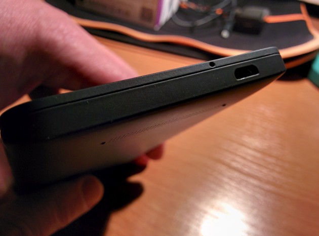 Na dolnej krawędzi znajduje się port microUSB. Co dziwnego nie jest on umiejscowiony centralnie, ale lekko po prawej stronie. Nie przeszkadzało mi to w żaden sposób, jednak trochę dziwnie to wyglądało.
