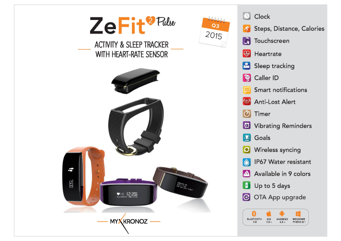 MyKronoz dużą uwagę poświęca rozwojowi marki rozwijając znane serie swoich smartwatchy. W nowej kolekcji najwięcej innowacji zyskała seria ZeFit, dzięki dwóm produktom: ZeFit2 oraz ZeFit2 Pulse. Sportowe opaski zostały wzbogacone o nowe opcje, takie jak choćby wymienny pasek. Absolutną nowością jest także opcja monitoringu pracy serca, która dostępna jest w wersji Pulse oraz w kilku innych nowych urządzeniach producenta.